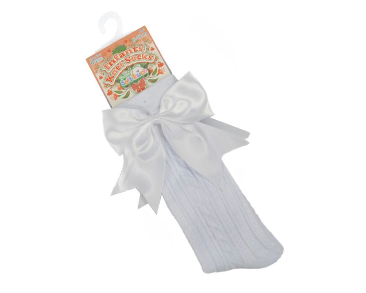 These White Knee High Baby Bow Socks are the perfect addition to your little one's wardrobe. Made from soft, high-quality materials, these socks will keep your baby's feet warm and comfortable all day long. With their adorable bow design, these socks add a touch of cuteness to any outfit.